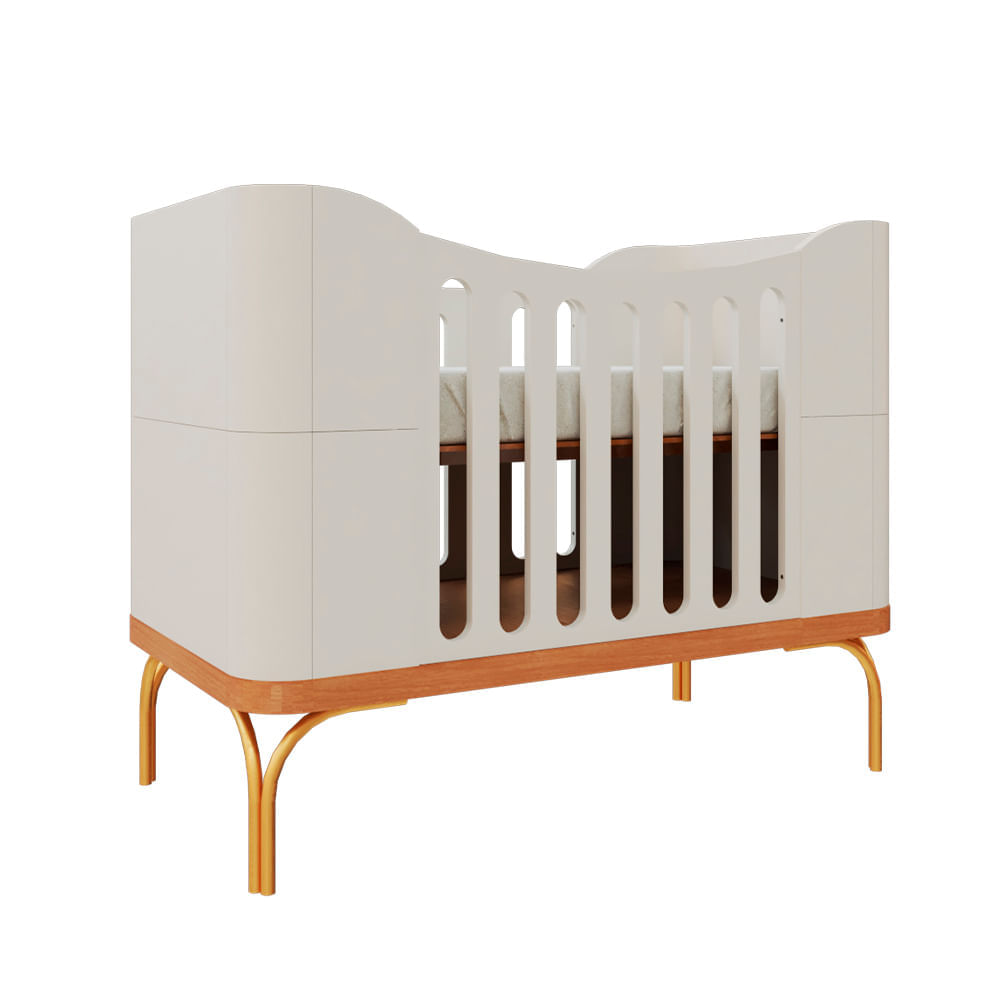 ![]() Berço Evolutivo Aquarela 3 em 1 - Areia com Pés Dourado |