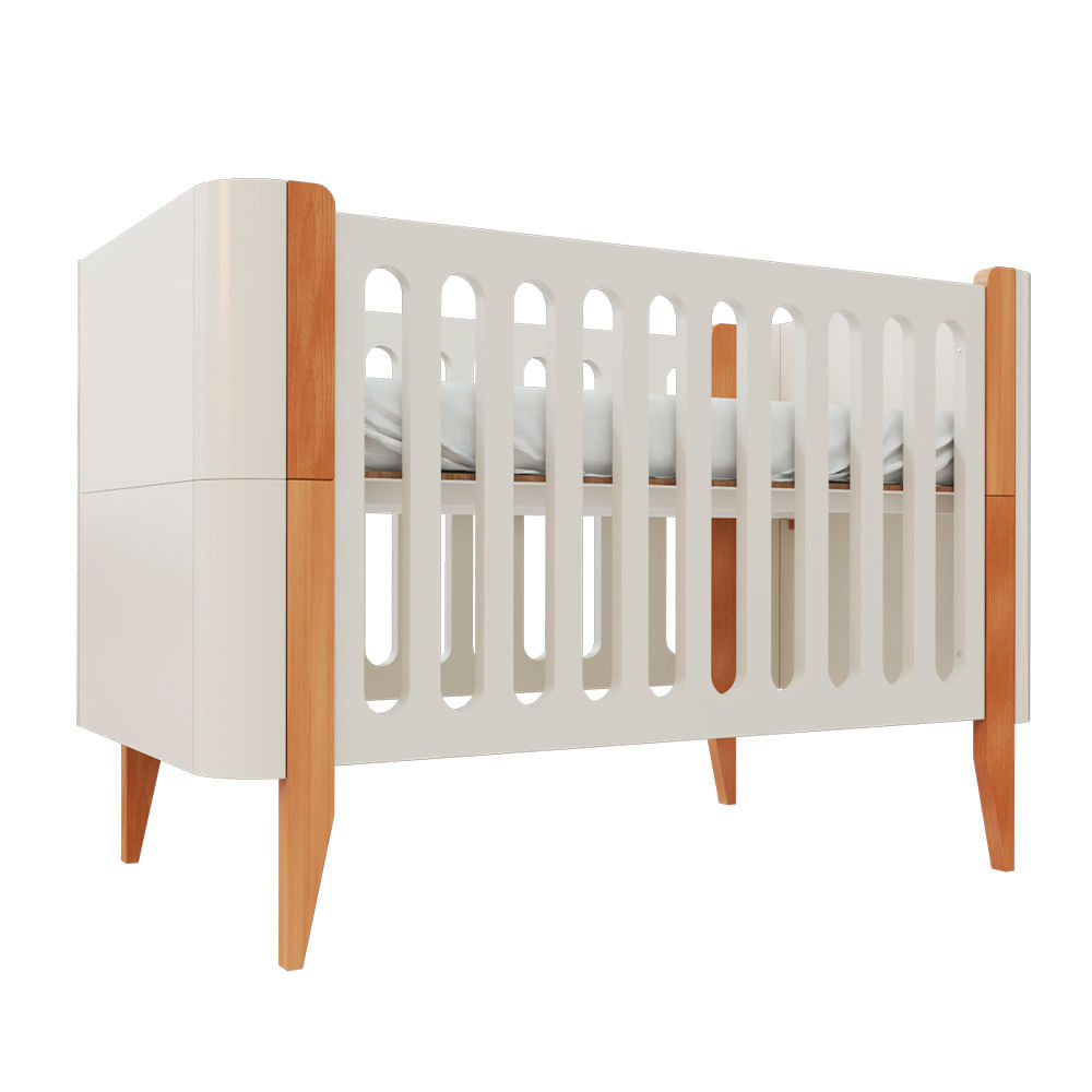 Berço Evolutivo Bo 3 em 1 Grades Branco Pés Jequitibá - Areia |