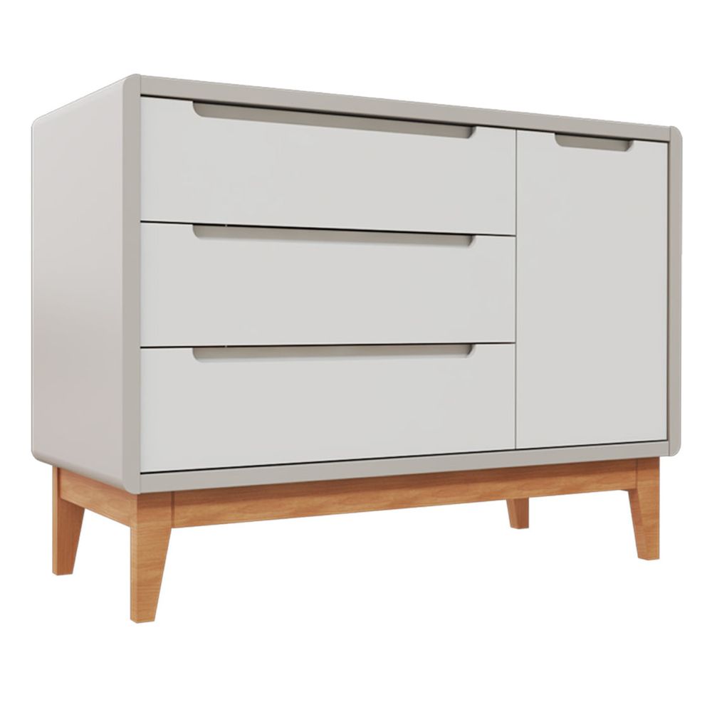 Cômoda Bo 3 Gavetas e 1 Porta - Cinza com Pés Jequitibá |