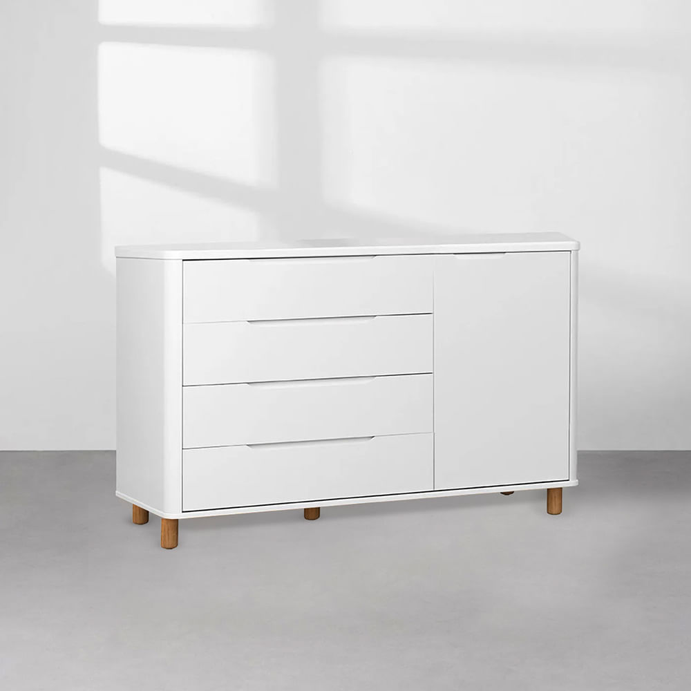 Cômoda Boom 4 Gavetas e 1 Porta com Pés Nordic Mel - Branco |