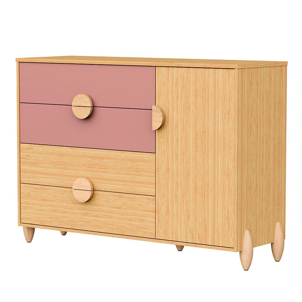 A Cômoda Gracia 4 Gavetas e 1 Porta - Rose e Naturale é um móvel infantil que une charme e funcionalidade para criar um ambiente acolhedor e organizado no quarto das crianças. Produzida em 100% MDF, oferece resistência e durabilidade para o uso diário, garantindo conforto e praticidade. Suas gavetas amplas e a porta lateral facilitam a organização de roupas e acessórios, tornando o dia a dia mais simples e agradável.