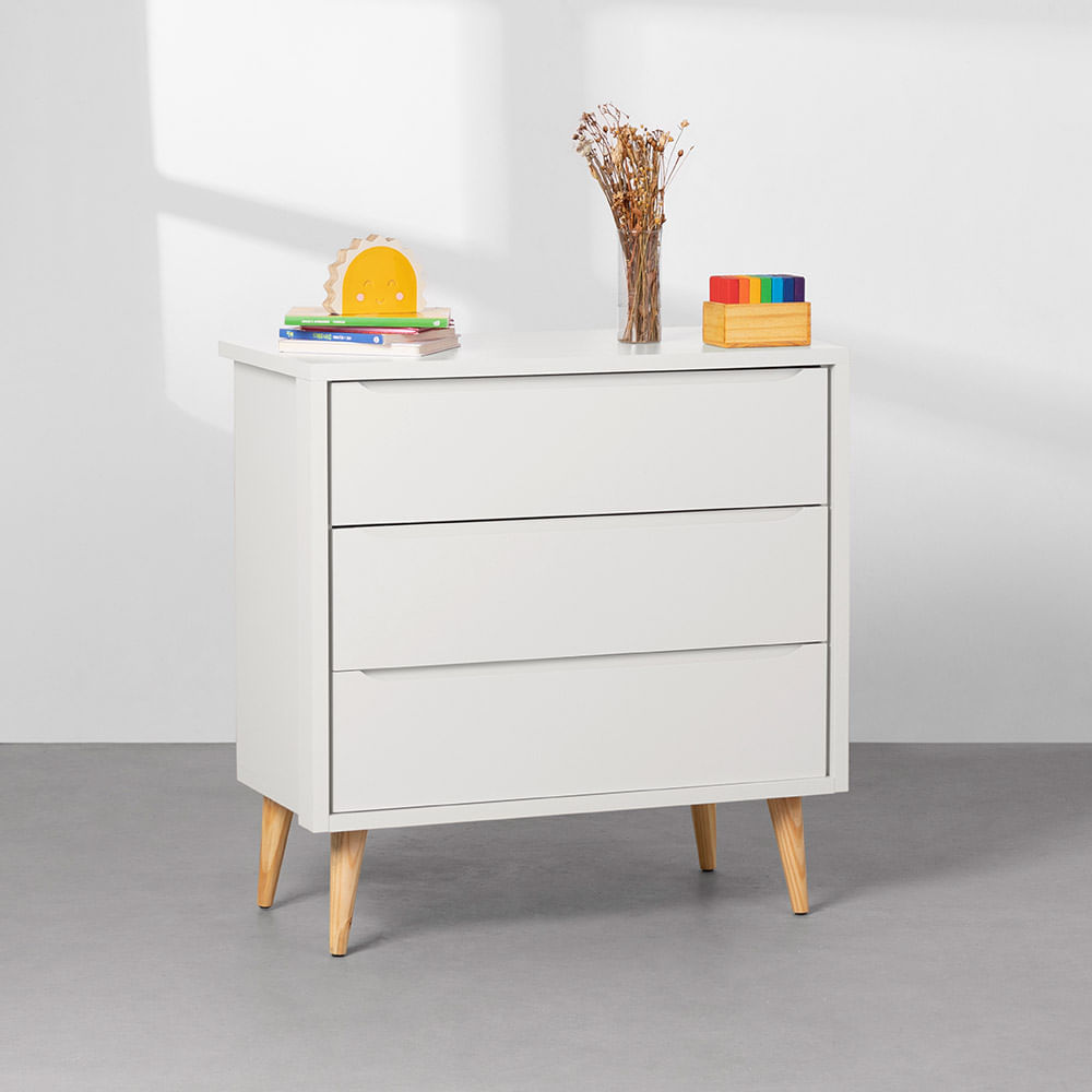 ![]() Cômoda Theo 3 Gavetas com Pés Retrô Natural - Branco |