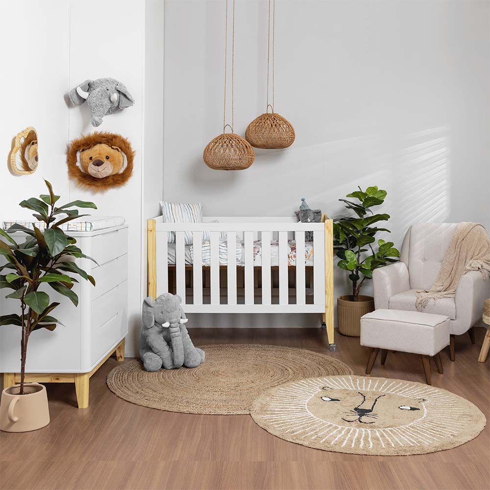 O Berço Tom Branco destaca-se pela sua multifuncionalidade, podendo ser ajustado conforme o crescimento do bebê. Seu design clean e acabamento branco proporcionam harmonia visual ao quarto, combinando com diversos estilos de decoração.