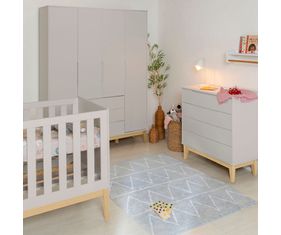 Kit Quarto Infantil com Pés Square Mel - Cômoda Elfe 4 Gavetas + Guarda-Roupa Elfe + Berço Mini Cama Noah - Areia Fosco |