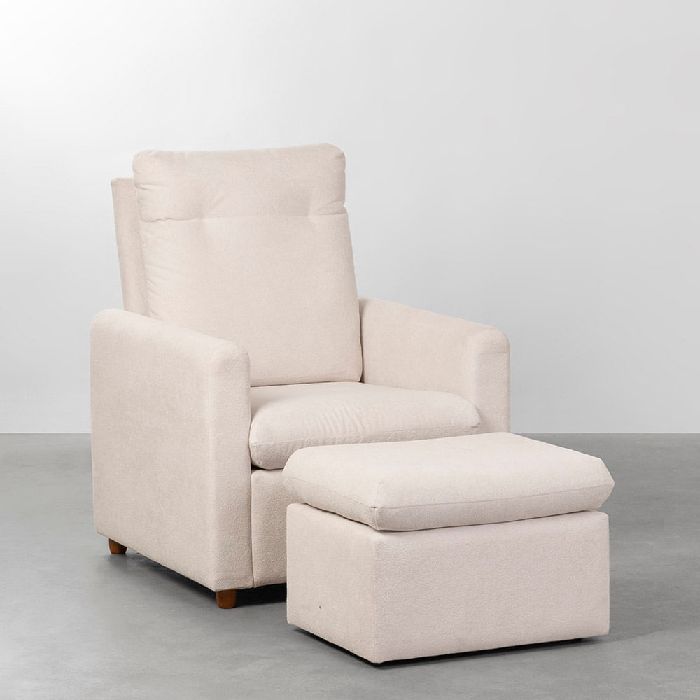 | Peso suportado | Poltrona: 100kg | Puff: 80kg |